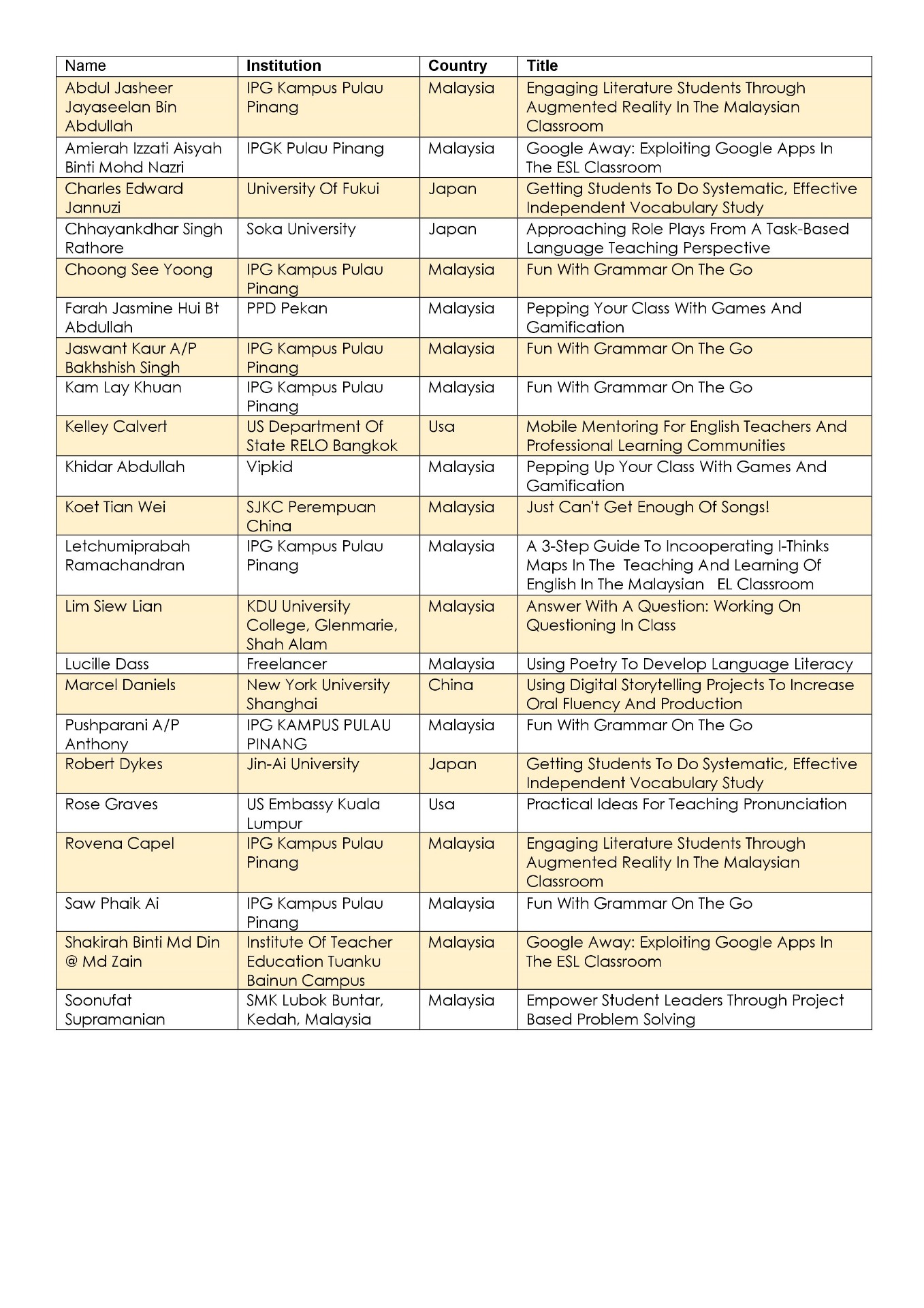 WORKSHOP PRESENTERS